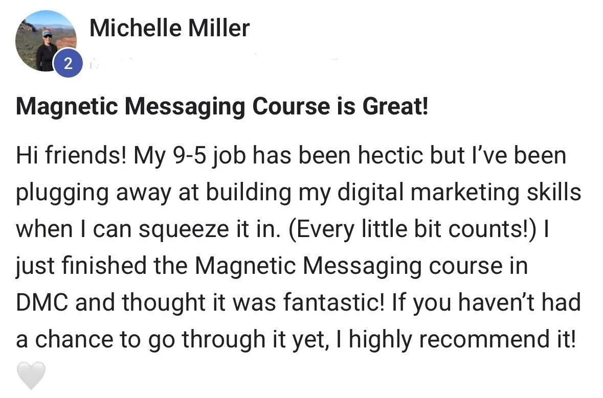 Most courses focus on what to post (like “do more reels”). Magnetic Messaging focuses on what to say so your content actually converts. It’s not about algorithms or hacks — it’s about proven communication frameworks that sell.